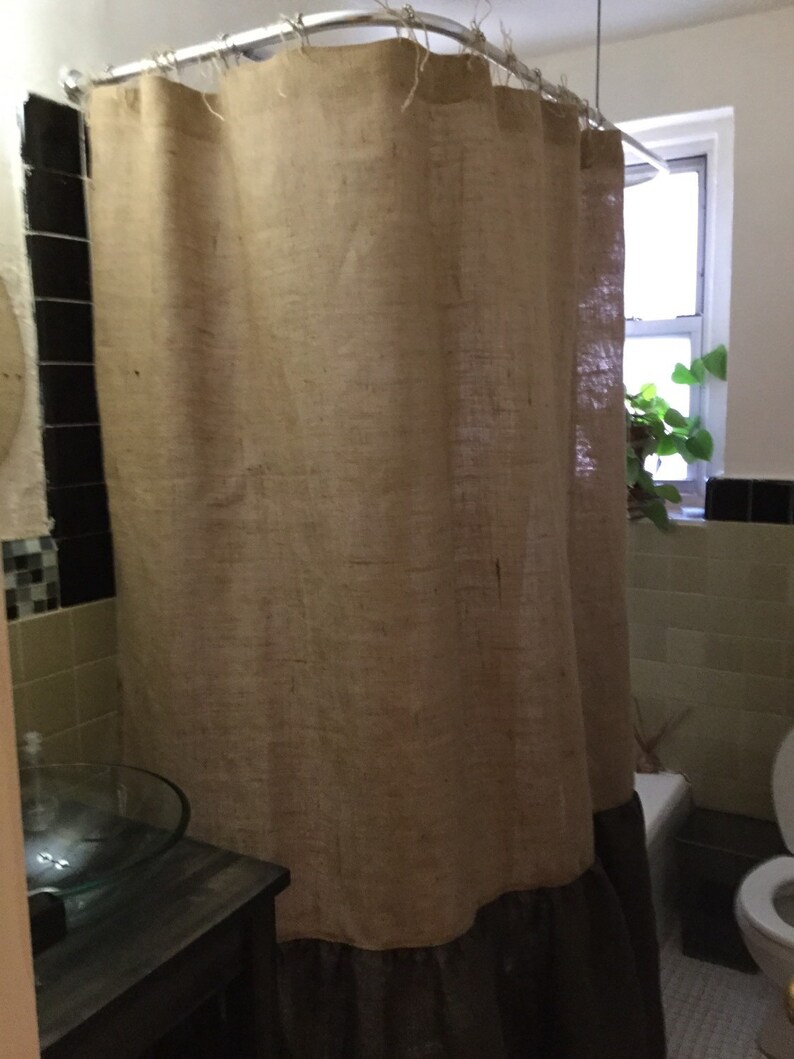 Find many great new & used options and get the best deals for burlap natural shower curtain unlined 72x72 at the best online prices at ebay! Made from top quality natural burlap. See how to use our burlap black check shower curtain and farmhouse stencil star braided rug in your primitive country home. Lord, i cannot even describe how excited i was to start on this shower curtain. Check out our burlap shower curtain selection for the very best in unique or custom, handmade pieces from our home & living shops. Every room in your home, the bedroom will look bad and unfinished… See more ideas about curtains, burlap shower curtains, burlap shower. Natural burlap shower curtain with burlap ruffle bottom 18 inches ruffle 72 inches wide seam to get the width basic holes for ring insert in pictures, shower curtain is 38 inches wide. A great shower curtain can set the tone of your entire bathroom. Today's post might come as a surprise to you, and you might even think i've completely gone mental to cover shower. Shower curtains with a valentine's day gift set pattern. Keep your floor dry & safe from mildew with shower curtains from zazzle! Burlap shower curtains shabby chic shower curtain diy curtains white curtains double curtains window curtains cafe curtains kitchen curtains burlap bathroom decor.